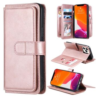 For iPhone 13 Pro Max Multifunctional Magnetic Copper Buckle Horizontal Flip Solid Color Leather Case with 10 Card Slots & Wallet & Holder & Photo Frame (Rose Gold)