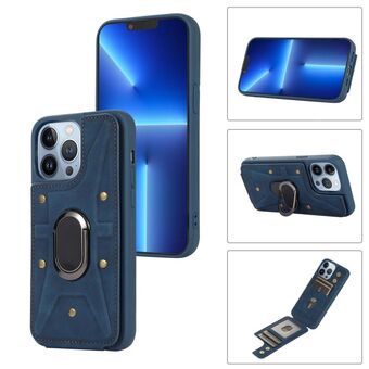 For iPhone 13 Pro Max Armor Ring Wallet Back Cover Phone Case(Blue)