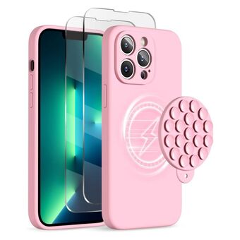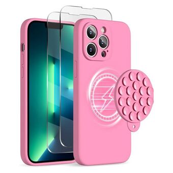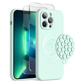 Θήκη τηλεφώνου MagSafe για iPhone 13 Pro Max από σιλικόνη με βεντούζα και προστατευτική μεμβράνη οθόνης (Μέντας Πράσινο)