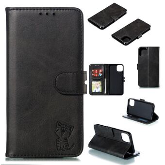 Θήκη για iPhone 13 Pro Max με ανάγλυφο σχέδιο χαρούμενης γάτας, οριζόντια, από δέρμα με βάση & θήκες για κάρτες & πορτοφόλι (Μαύρο)