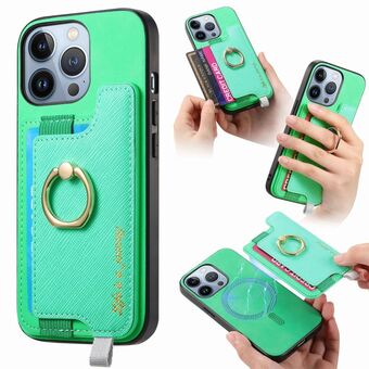 For iPhone 13 Pro Max Retro Magsafe Cross Leather Ring Holder Card Bag Phone Case(Green)
