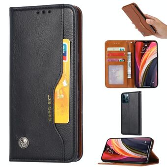 For iPhone 13 Pro Max Calfskin Color Matching Shockproof TPU + PU Case with Holder & Card Slot (Black)