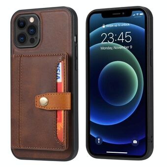 For iPhone 13 Pro Max Calfskin Color Matching Shockproof TPU + PU Case with Holder & Card Slot (Brown)