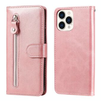 For iPhone 13 Pro Max Fashion Calf Texture Zipper Horizontal Flip Leather Case with Stand & Card Slots & Wallet Function (Rose Gold)