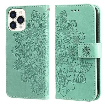 For iPhone 13 Pro Max 7-petal Flowers Embossing Pattern Horizontal Flip PU Leather Case with Holder & Card Slots & Wallet & Photo Frame (Green)