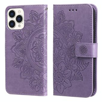 For iPhone 13 Pro Max 7-petal Flowers Embossing Pattern Horizontal Flip PU Leather Case with Holder & Card Slots & Wallet & Photo Frame (Light Purple)