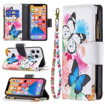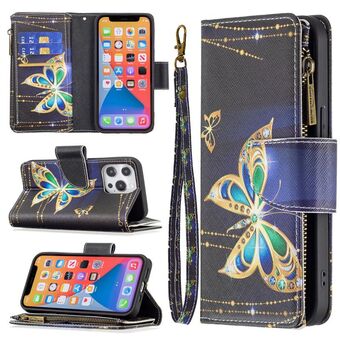 For iPhone 13 Pro Max Colored Drawing Pattern Zipper Horizontal Flip Leather Case with Holder & Card Slots & Wallet (Big Butterfly)