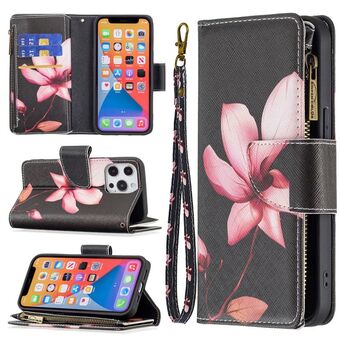 For iPhone 13 Pro Max Colored Drawing Pattern Zipper Horizontal Flip Leather Case with Holder & Card Slots & Wallet (Lotus)