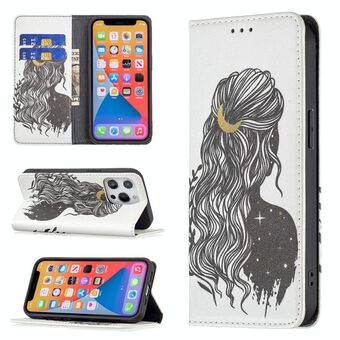 For iPhone 13 Pro Max Colored Drawing Pattern Invisible Magnetic Horizontal Flip PU Leather Case with Holder & Card Slots & Wallet (Girl)