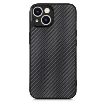 Θήκη κινητού τηλεφώνου για iPhone 13 Pro Max με υφή ανθρακονήματος και δερμάτινη πλάτη (Μαύρο)