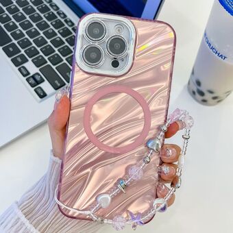 Θήκη τηλεφώνου MagSafe TPU με επιμετάλλωση, υφή βραχιολάκι για iPhone 13 Pro Max με προστατευτική μεμβράνη φακού με γκλίτερ (Λευκά Κύματα Νερού)