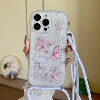 Θήκη κινητού τηλεφώνου TPU για iPhone 13 Pro Max, Crossbody με κυματιστό περίγραμμα και σχέδιο πεταλούδας (Ροζ)