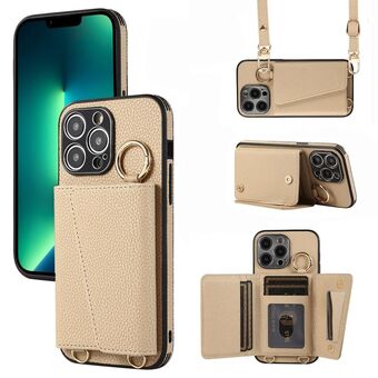 Θήκη κινητού τηλεφώνου για iPhone 13 Pro Max, δερμάτινη θήκη πλάτης με δακτύλιο και θήκη για κάρτες (Κίτρινο)