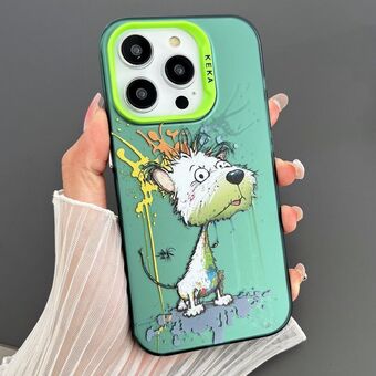 For iPhone 13 Pro Max Dual-sided IMD Animal Graffiti TPU + PC Phone Case(Melting White Green Dog)
