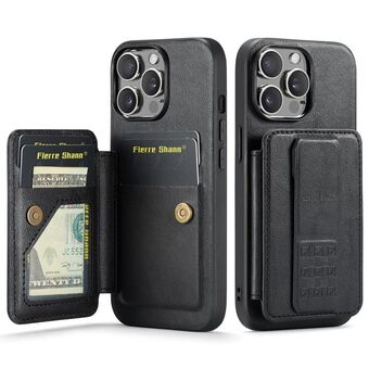 For iPhone 13 Pro Max Fierre Shann Oil Wax Cow Leather Card Holder Back Phone Case(Black) (FIERRE SHANN)