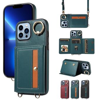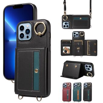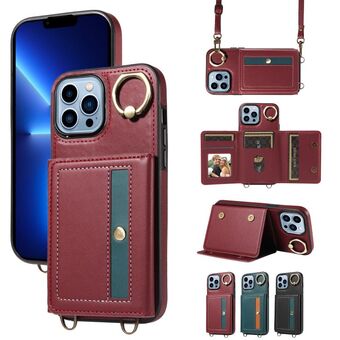 For iPhone 13 Pro Max Crossbodys Card Bag Ring Holder Leather Phone Case(Black)