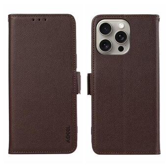 For iPhone 13 Pro Max ABEEL Side-Magnetic Litchi Pattern Leather RFID Phone Case(Brown)