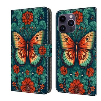 For iPhone 12 Pro Max/13 Pro Max Crystal Painted Leather Phone case(Flower Butterfly)
