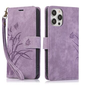 For iPhone 13 Pro Max Orchid Butterfly Embossed Leather Phone Case(Purple)
