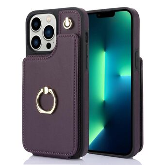 For iPhone 13 Pro Max YM007 Ring Holder Card Bag Skin Feel Phone Case(Purple)