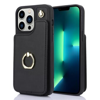 For iPhone 13 Pro Max Organ Card Bag Ring Holder Phone Case with Long Lanyard(Black)