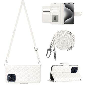 For iPhone 13 Pro Max Rhombic Texture Flip Leather Phone Case with Long Lanyard(White)