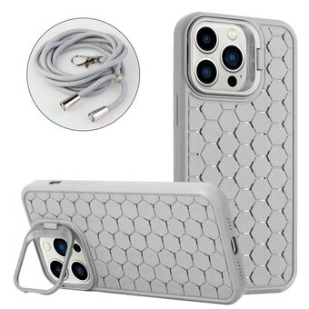 Θήκη τηλεφώνου TPU για iPhone 13 Pro Max με σχέδιο κυψελωτού και λουρί (Γκρι)