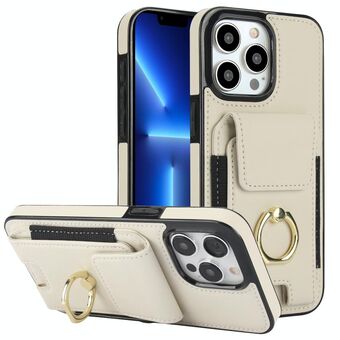 Θήκη τηλεφώνου για iPhone 13 Pro Max με ελαστική τσέπη για κάρτες και δαχτυλίδι στήριξης (Λευκό)