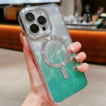 Θήκη τηλεφώνου TPU με μαγνητική σύνδεση Magsafe, διαφανές σχέδιο με φτερά και ιριδίζοντα χρώματα για iPhone 13 Pro Max (Πράσινο)