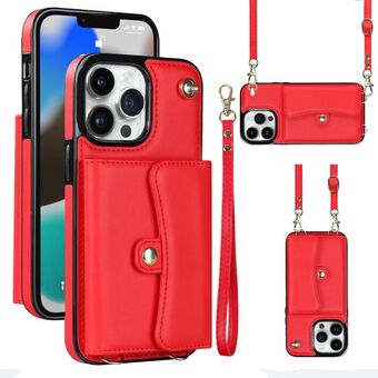 Θήκη κινητού για iPhone 13 Pro Max με υποδοχή κάρτας RFID και μακρύ λουρί (Κόκκινο)