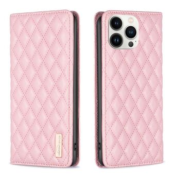 Θήκη τηλεφώνου από δέρμα με μαγνητικό κλείσιμο, υφή μοσχαρίσιου δέρματος σε κυβικό πλέγμα για iPhone 13 Pro Max (Μαύρο)