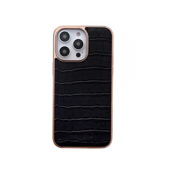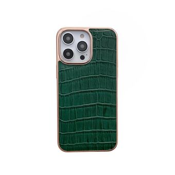 Θήκη τηλεφώνου από γνήσιο δέρμα με νανοεπίχρυση υφή κροκόδειλου για iPhone 13 Pro Max (Μπλε)