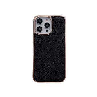 Θήκη τηλεφώνου από γνήσιο δέρμα με νανοεπίχρυση και ανάγλυφη υφή σταυρού για iPhone 13 Pro Max (Μπλε)