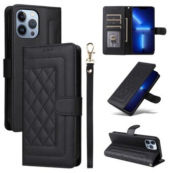 Θήκη τηλεφώνου με υφή ρόμβου για iPhone 13 Pro Max με διπλό κορδόνι (Μωβ)