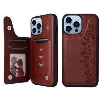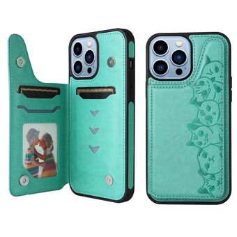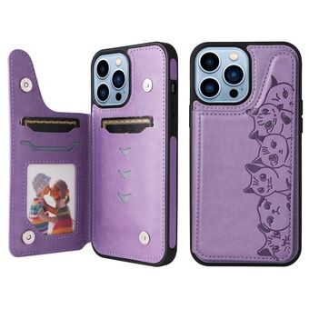 Θήκη κινητού τηλεφώνου για iPhone 13 Pro Max με ανάγλυφο σχέδιο έξι γατών, αντικραδασμική (Μαύρο)
