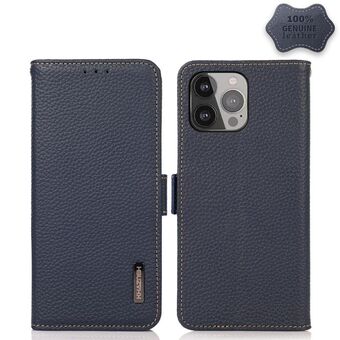 Θήκη KHAZNEH για iPhone 13 Pro Max με πλευρική μαγνητική σύνδεση, από γνήσιο δέρμα Litchi με προστασία RFID (Μαύρο)