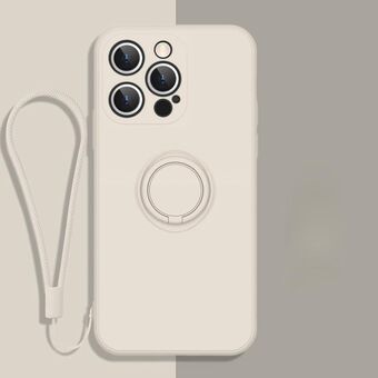 Θήκη προστασίας κινητού τηλεφώνου από υγρή σιλικόνη για iPhone 13 Pro Max με δακτύλιο στήριξης & κορδόνι (Σκόνη Αμμόπετρας)