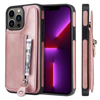 Θήκη τηλεφώνου πολλαπλών λειτουργιών από δέρμα για iPhone 13 Pro Max με υποδοχή κάρτας & βάση στήριξης & πορτοφόλι με φερμουάρ & κορνίζα φωτογραφιών (Καφέ)