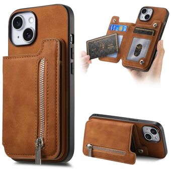 For iPhone 13 Retro MagSafe Zipper Wallet Card Bag Back Phone Case(Brown)