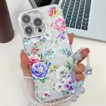 For iPhone 13 Pro Electroplating Flowers Plants Texture Wristband TPU Phone Case(Colorful Peony FL10)