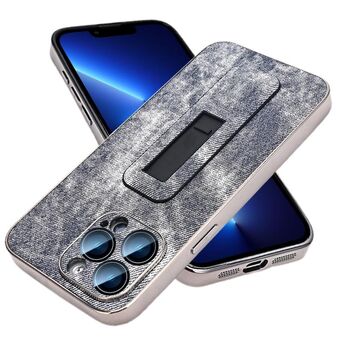 For iPhone 13 Pro Denim Pattern Electroplated Push-pull Bracket Cooling Phone Case(Grey Blue)