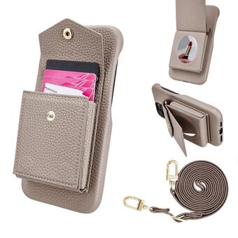 For iPhone 13 Pro Litchi Texture Vertical Card Bag Holder Phone Case with Long Lanyard(Grey)