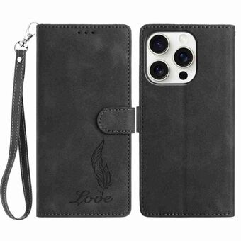 For iPhone 13 Pro Skin Feel Embossed Feather Leather Phone Case(Black)