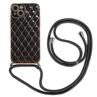 For iPhone 13 Pro Electroplating Lambskin Lanyard Phone Case (Black)
