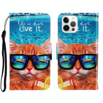 For iPhone 13 Pro 3D Colored Drawing Horizontal Flip Leather Phone Case (Down Jacket Cat)
