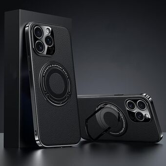 For iPhone 13 Pro Plain Leather Hydric Metal Holder MagSafe Phone Case(Black)
