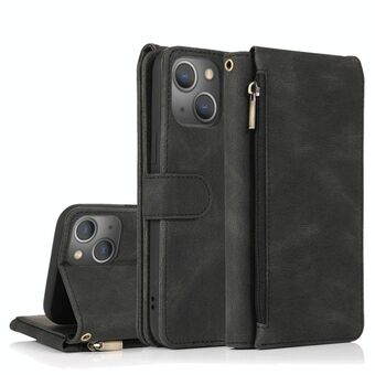 For iPhone 13 Pro Skin-feel Crazy Horse Texture Zipper Wallet Bag Horizontal Flip Leather Case with Holder & Card Slots & Wallet & Lanyard (Black)