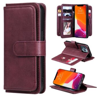 For iPhone 13 Pro Multifunctional Magnetic Copper Buckle Horizontal Flip Solid Color Leather Case with 10 Card Slots & Wallet & Holder & Photo Frame (Wine Red)