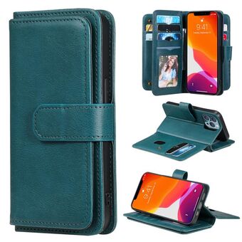 For iPhone 13 Pro Multifunctional Magnetic Copper Buckle Horizontal Flip Solid Color Leather Case with 10 Card Slots & Wallet & Holder & Photo Frame (Dark Green)