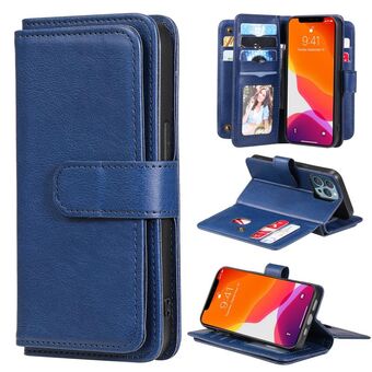 For iPhone 13 Pro Multifunctional Magnetic Copper Buckle Horizontal Flip Solid Color Leather Case with 10 Card Slots & Wallet & Holder & Photo Frame (Dark Blue)